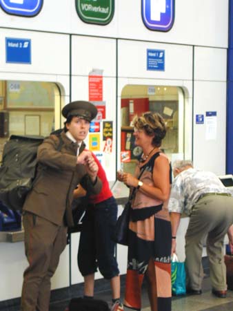a Swiss tourist seems obviously interested. The Commissar is giving her