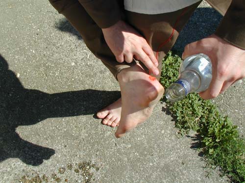 The Commissar notices injuries on his heels, enormous blisters resulting from the Tumulus manoeuvre. He sterilises them with vodka ‘like my fathers once did.’